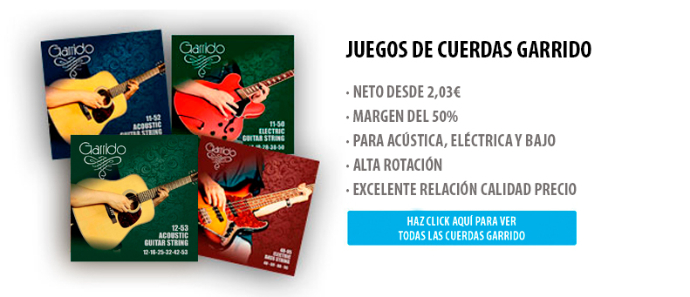 Desde ya podréis encontrar en nuestra sección de outlet todos los juegos de cuerdas de la marca Garrido con un margen del 50%. No dejes pasar la oportunidad de implementar en tu catalogo una de nuestras marcas con mayor rotación.